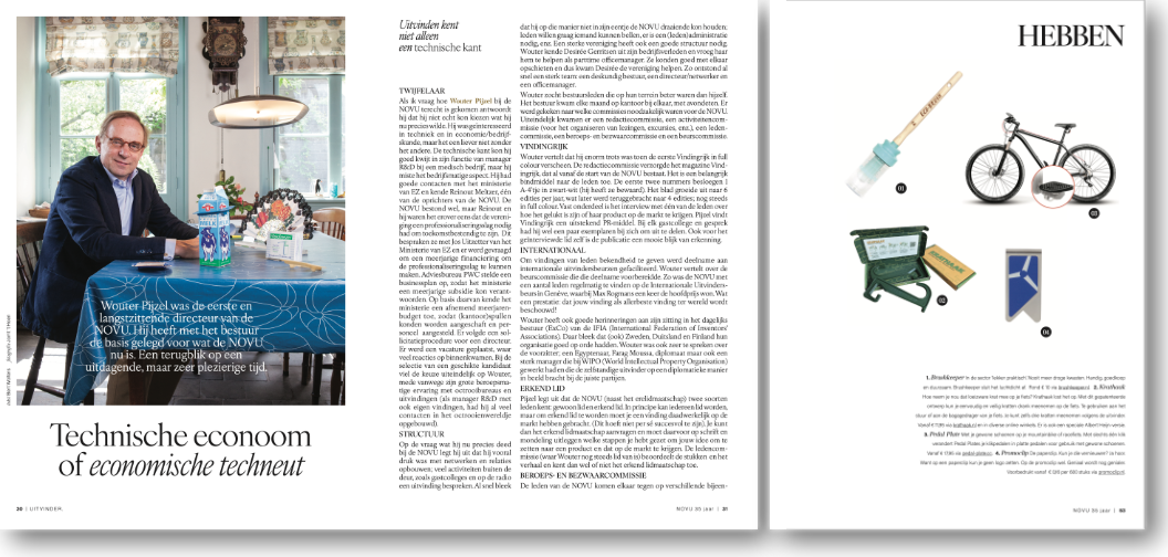 Omdat de NOVU 35 jaar bestaat hebben we een feestelijk jubileum magazine gemaakt met de naam 'Uitvinder'. Het is een prachtige glossy geworden van 84 pagina's met meer dan 18 vrouwelijke uitvinders in de hoofdrol. De reacties zijn overweldigend.