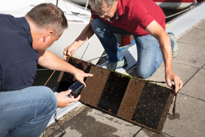Bij de huidige folie is in zout water nog een zekere mate van aangroei mogelijk (alleen aangroei van zachte organismen) maar dat is eenvoudig met een speciale spons te verwijderen. In zoet water komt deze aangroei niet voor. Het nieuwe materiaal moet ook aangroei weren in zout water. In Zeeland heeft hij nu een aantal proefpanelen hangen om te kijken welk materiaal het beste reageert. In het Veerse Meer en Grevelingen zit nog een organisme dat lastig is voor het huidige Finsulate.