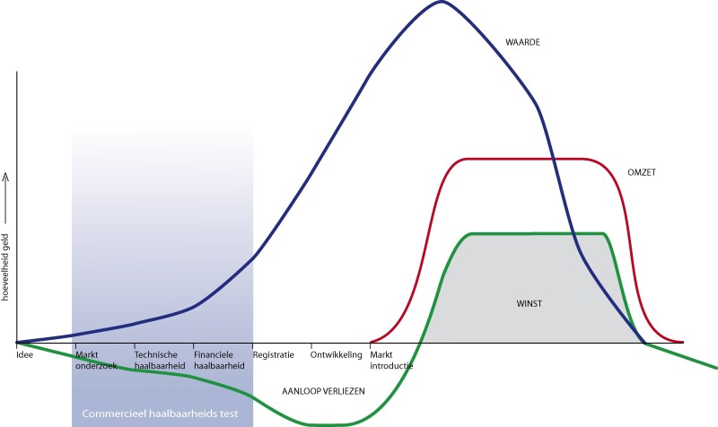 Het bedrag dat je afnemer/investeerder (hierna ‘afnemer’) wil betalen hangt onder andere af van hoeveel je al zelf hebt geïnvesteerd in je vinding, de mate waarin je vinding beschermd is, de nog te verwachten investeringen, enz. Het gaat er vooral om wat je afnemer als winstmogelijkheden ziet voor je product. Je versterkt je onderhandelingspositie als je hier zelf ook al inzicht in hebt.
