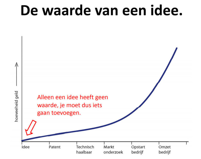 Een idee alleen is niets waard. Je moet er dus waarde aan toevoegen. Dit kan door een marktonderzoek te doen, een octrooi aan te vragen, een technische haalbaarheidsstudie te laten uitvoeren, enz.