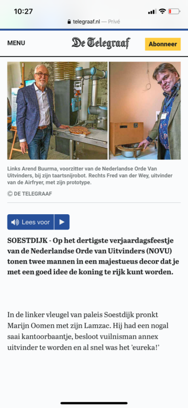 In ‘Uitgevonden’ gaan we dieper in op het proces van idee tot markt. Geregeld interviewen we NOVU leden die het is gelukt om hun vinding op de markt te brengen. Deze week staat de uitvinding van Arend Buurma, het Hybride Snijsysteem, in de spotlight.