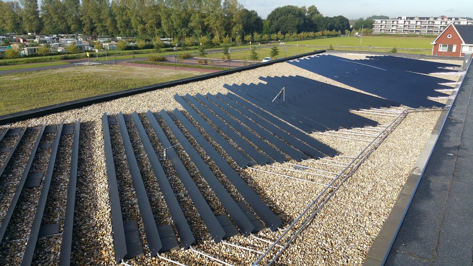 De Multicollector kent in beginsel hetzelfde principe als een zonnecollector. ,,Alleen de Multicollector kent een traject van min 5 tot plus 30 graden, een zonnecollector werkt pas bij plus 10 en gaat door tot 90 graden. De Multicollector is vrij eenvoudig opgebouwd en daardoor veel goedkoper. Omdat die slechts 18 centimeter hoog is, valt die ook niet op. Bij schuine en monumentale panden is die zelfs onder een dakpan te plaatsen. Onder een dakpan wordt het loeiheet in de zomer. Daar is veel energie weg te halen.”